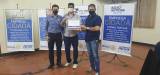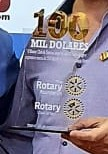 O presidente Luís Barros recebeu das mãos de José Eduardo Cantieri Costa, presidente da comissão da Fundação Rotária no clube, um troféu alusivo aos 100 mil dólares doados pelo Rotary Club de Tatuí à FR, em seus 73 anos de existência.