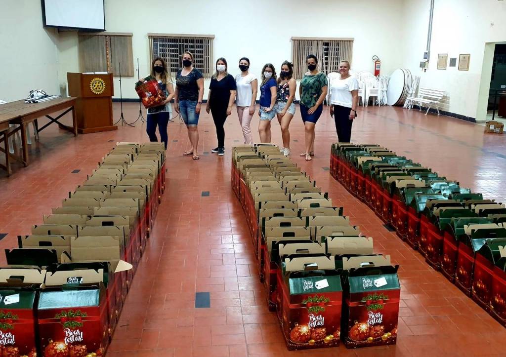 A Casa da Amizade do Rotary Club de Tatuí, sob o comando da presidente Vanilda Bastos Barros, reuniu na quarta-feira, dia 9, rotarianas e interactianas, na sede da entidade, para a montagem de 120 cestas de Natal. Cada cesta contém: panetone com frutas, panetone de chocolate, champanha Sidra, amendoim torrado, bala mastigável, biscoito recheado, farofa pronta, geladinho, goma Sachet, macarrão, maionese, molho de tomate, refresco em pó, salgadinho Snacks, torrone, refrigerante Tubaína e caixa de Bis, este item, doado pelos jovens do Interact Club de Tatuí.