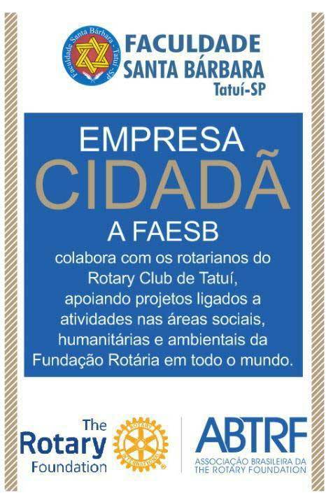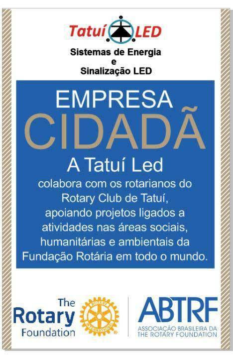 José Eduardo Cantieri Costa, presidente da Comissão da Fundação Rotária, no clube, informou que mais duas empresas firmaram parceria com o RC de Tatuí, como Empresas Cidadãs: a Tatuí Led e a Faesb (Faculdade Santa Bárbara).