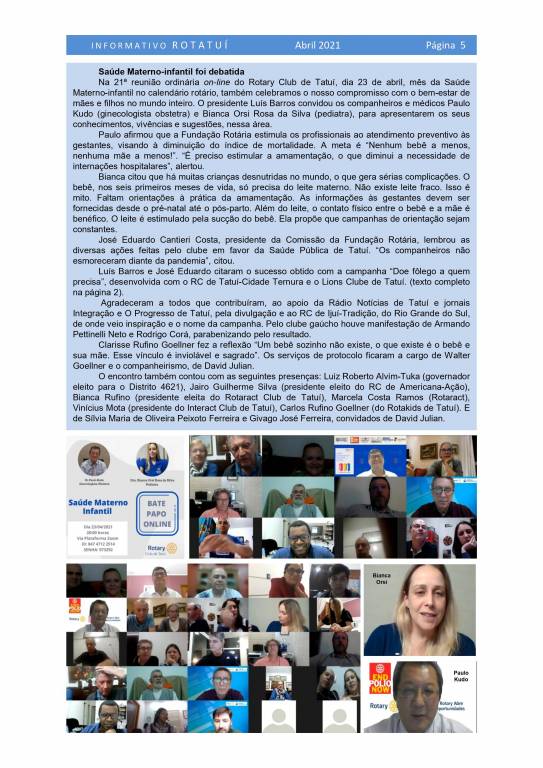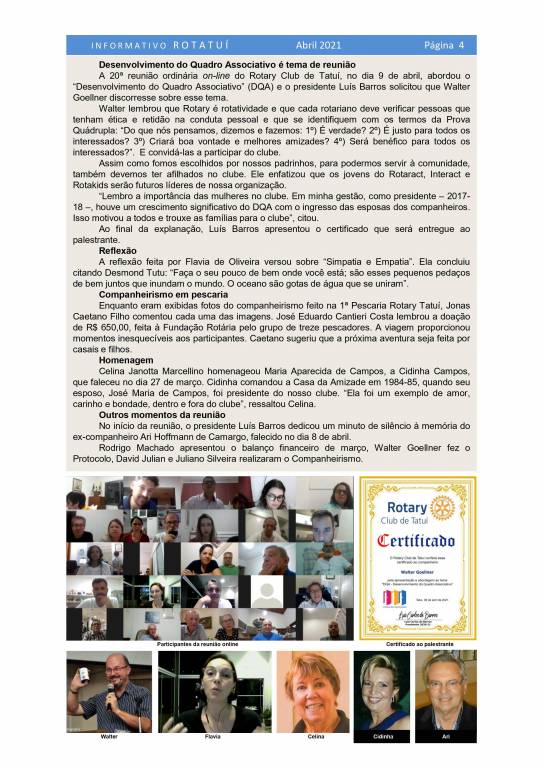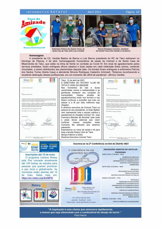 Informativo Rotatuí nº 10 - abril-2021 - do Rotary Club de Tatuí
