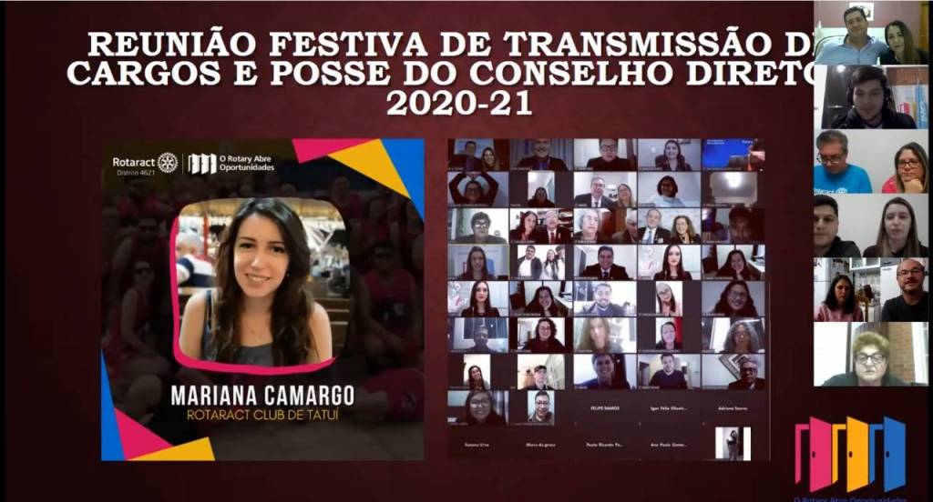 Os valiosos jovens do Rotaract, Interact e Rotakids foram merecidamente destacados em reunião on-line do Rotary Club de Tatuí, no dia 21 de maio, comandada pelo presidente Luís Barros. “Nossa juventude é uma luz que brilha em nosso Distrito”, disse Luiz Roberto Alvim-Tuka, que, em junho, tomará posse como Governador do Distrito 4621, para o próximo ano rotário, de 1º de julho de 2021 até 30 de junho de 2022.