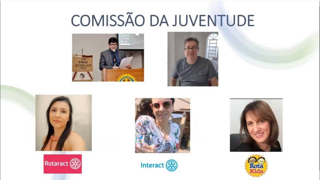 Dácio Vieira de Camargo Neto, presidente da Comissão de Serviços à Juventude, ressaltou a eficiência de sua equipe, com destaques para Clarisse Rufino Goellner, Flavia Abu Jamra de Oliveira, Janaína dos Santos Lera de Campos, Jaqueline Bueno Leme, Marcelo Bueno de Campos e Silvana Ribeiro da Silva Silveira. E enfatizou que, mesmo durante a pandemia, os jovens muito fizeram pela comunidade. Foram apresentadas as ações dos três clubes tatuianos: Rotaract, Interact e Rotakids, que junto com o Rotary Clube de Tatuí e a Casa da Amizade formam a nossa Família Rotária.