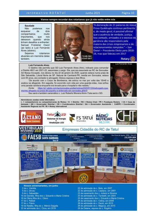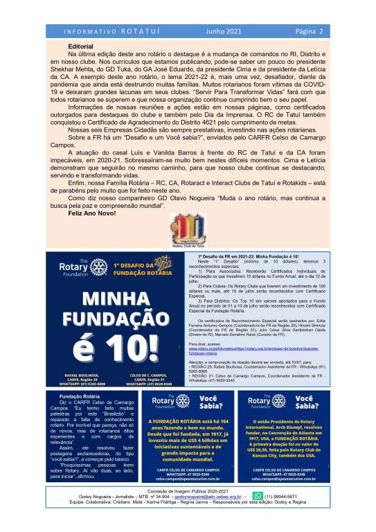 Informativo Rotatuí nº 12 - 2020-21 - junho de 2021