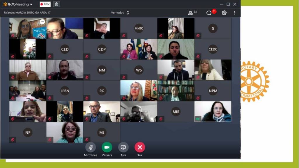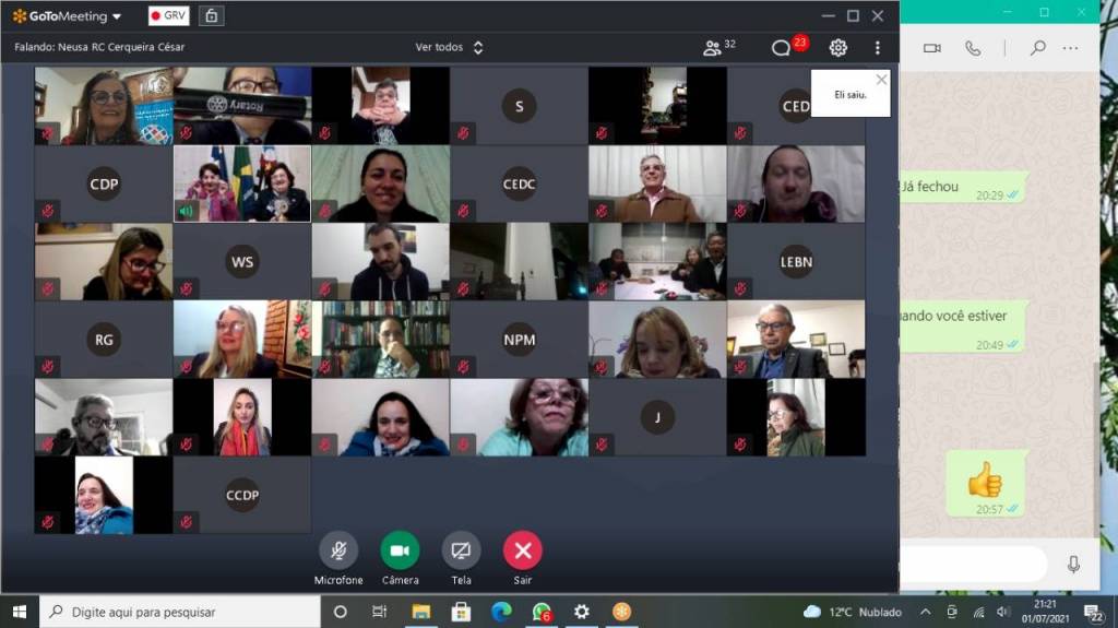 Festiva virtual de posse da presidente Neusa Maria Israel Rocha e Conselho Diretor e Fiscal ano rotário 2021-2022.