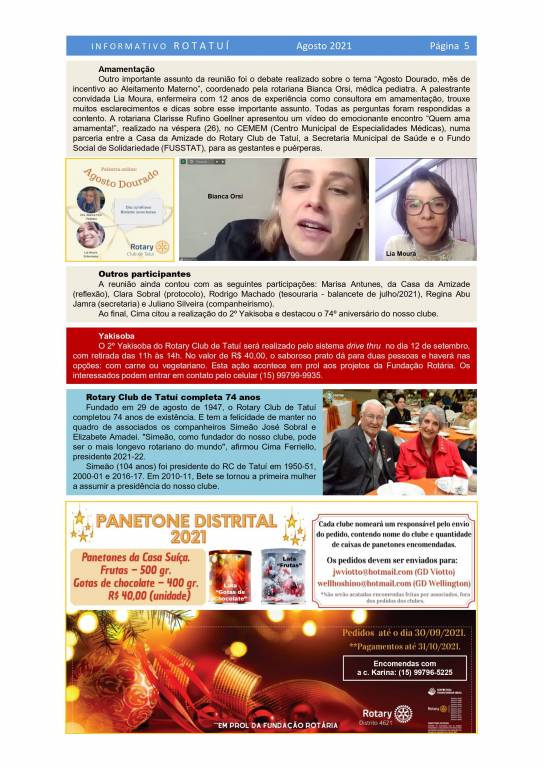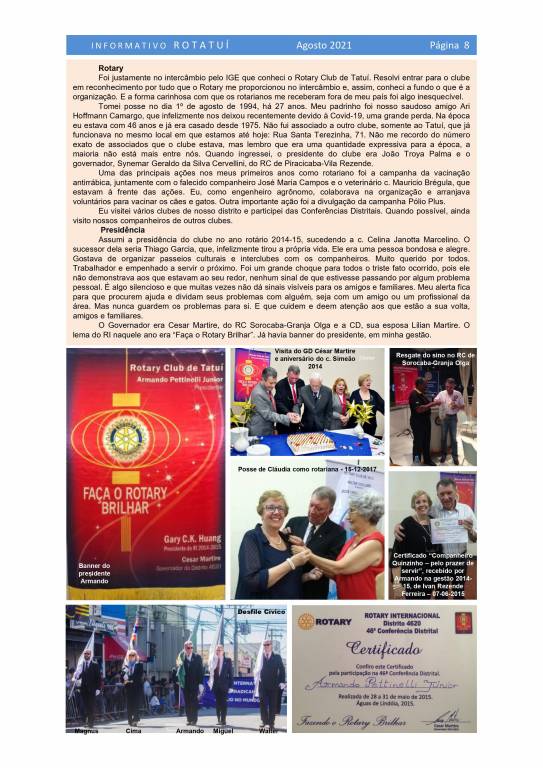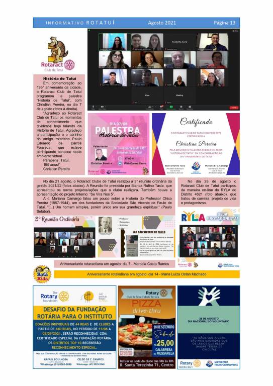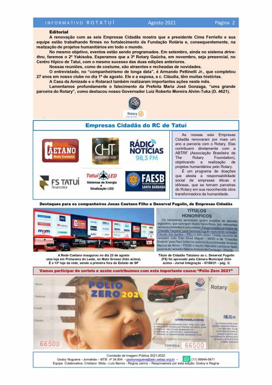 Informativo Rotatuí nº 2 - 2021-22 - agosto de 2021