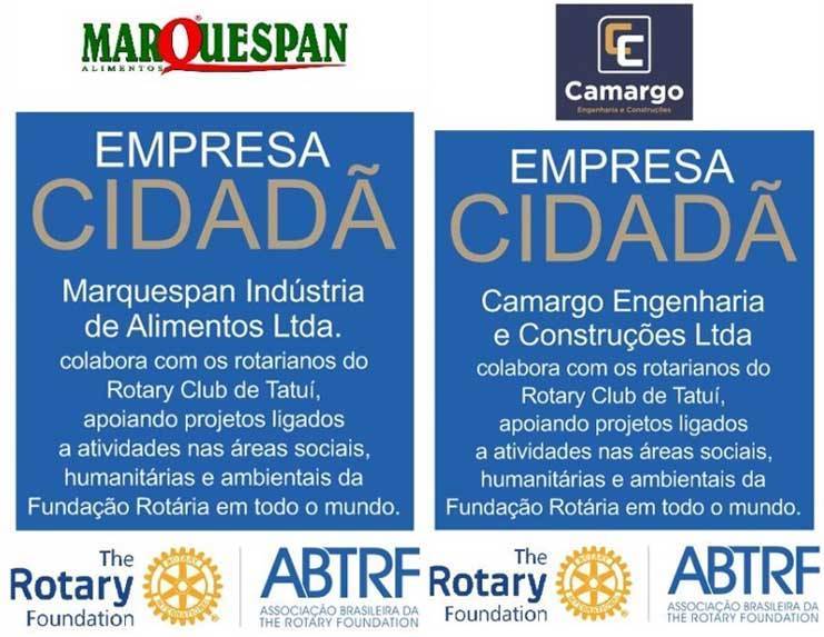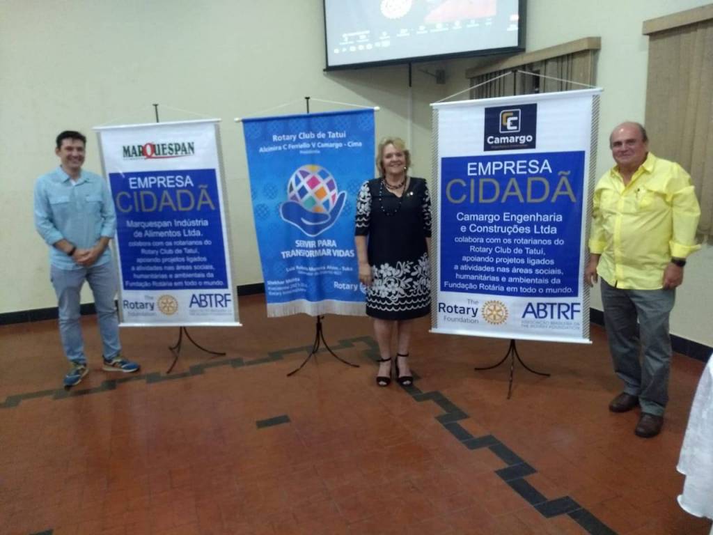 Em sua primeira reunião presencial na atual gestão, realizada no dia 24 de setembro em sua sede, sob a presidência de Cima Ferriello, o Rotary Club de Tatuí, por intermédio de José Eduardo Cantieri Costa apresentou as duas novas Empresas Cidadãs: Marquespan Alimentos e Camargo Engenharia e Construções. Elas se juntam às outras seis empresas, que renovaram a parceria com o clube: Rede Caetano, Centro Hípico de Tatuí, Rádio Notícias de Tatuí, FS Tatuí Financeira, Tatuí LED e FAESB – Faculdade de Ensino Superior Santa Bárbara. “As contribuições das oito Empresas Cidadãs vão para a ABTRF (Associação Brasileira da The Rotary Fundation) e são destinadas aos projetos humanitários locais e mundiais”, disse Cantieri. Ele, que é o presidente da Comissão da Fundação Rotária no clube, destacou que, “com as contribuições dessas empresas,nosso clube aparece em primeiro lugar, entre clubes de toda a Região 31, em contribuições à ABTRF”. E finalizou dizendo “estamos buscando patrocinadores para 3ª Rotary Gaúcha, que será no almoço do domingo, 28 de novembro, no Centro Hípico de Tatuí”.