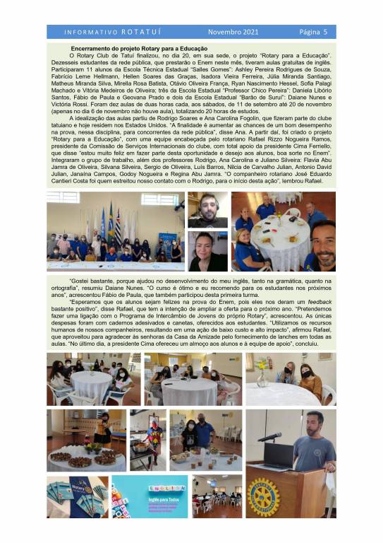 Informativo Rotatuí nº 5, de novembro de 2021
