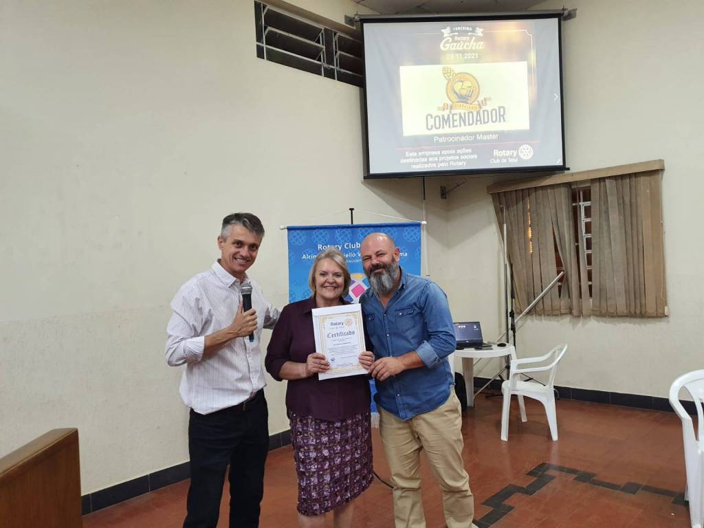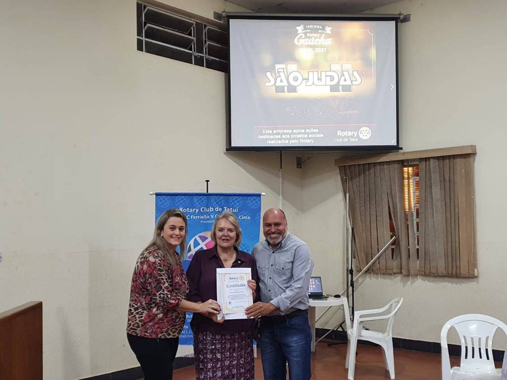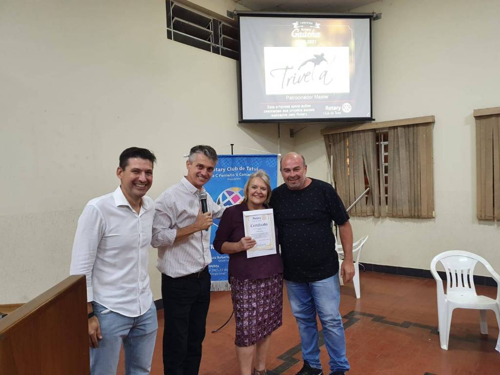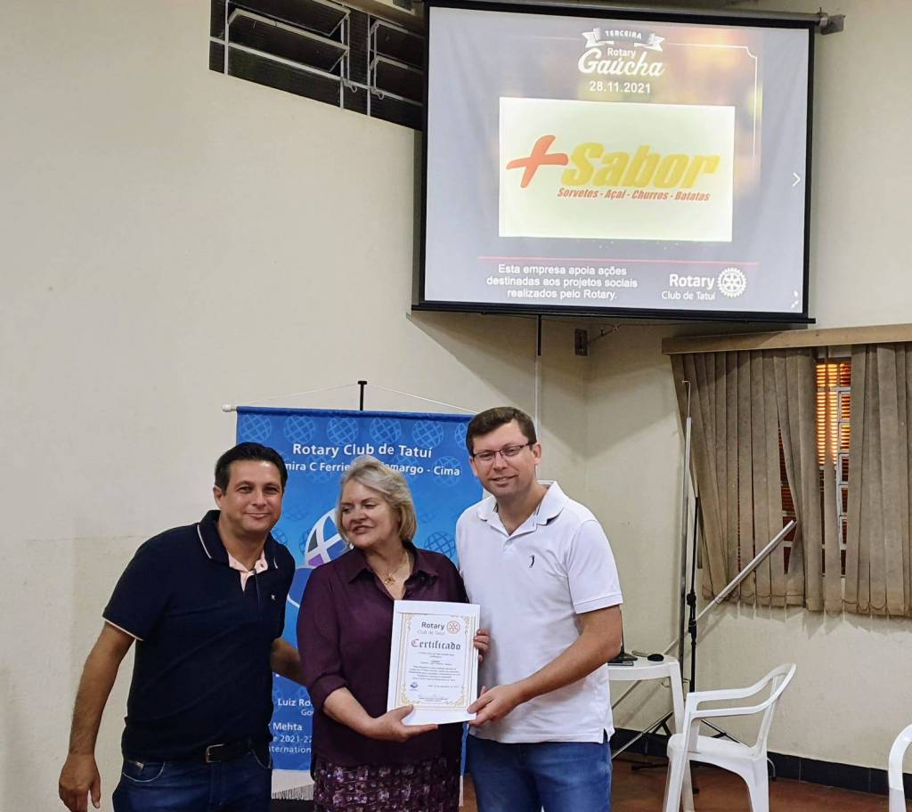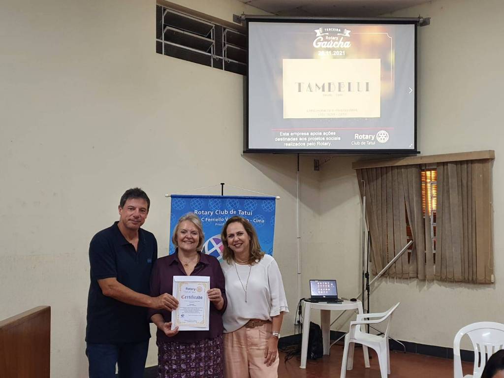 A presidente Cima Ferriello, do Rotary Club de Tatuí, agradeceu aos patrocinadores da 3ª Rotary Gaúcha, com a outorga de certificados aos mesmos. A cerimônia aconteceu na reunião ordinária do dia 03, na sede do clube, denominada “Festa em Ação de Graças aos colaboradores”.