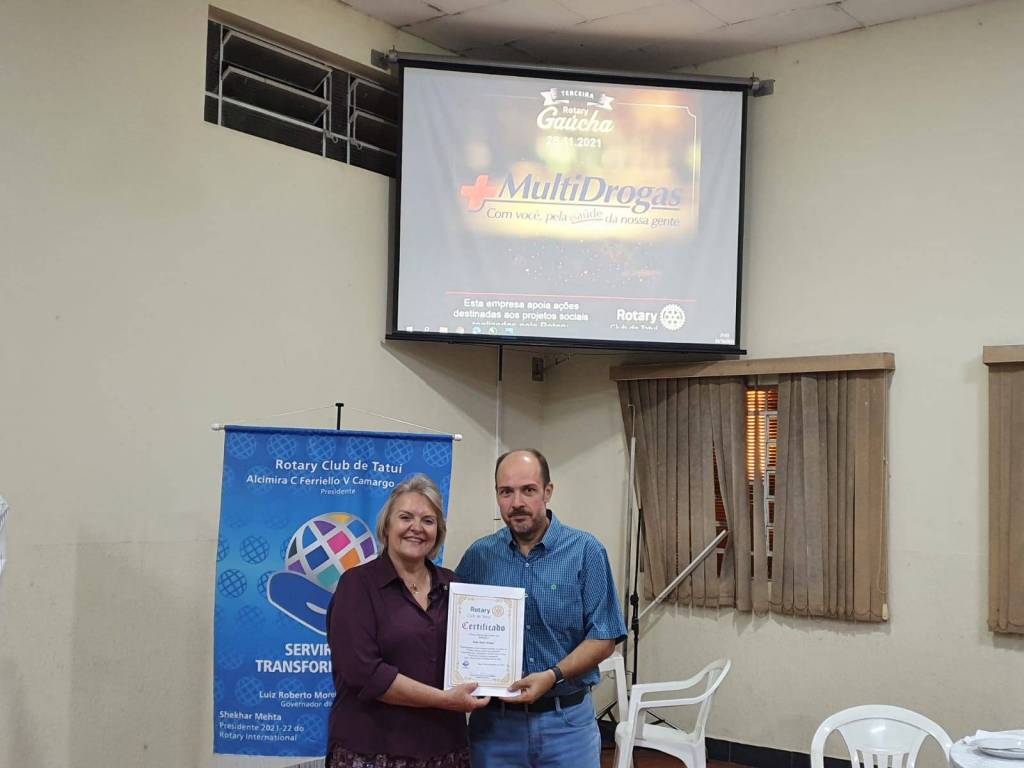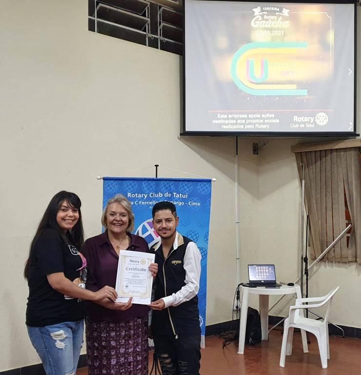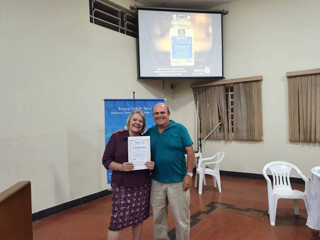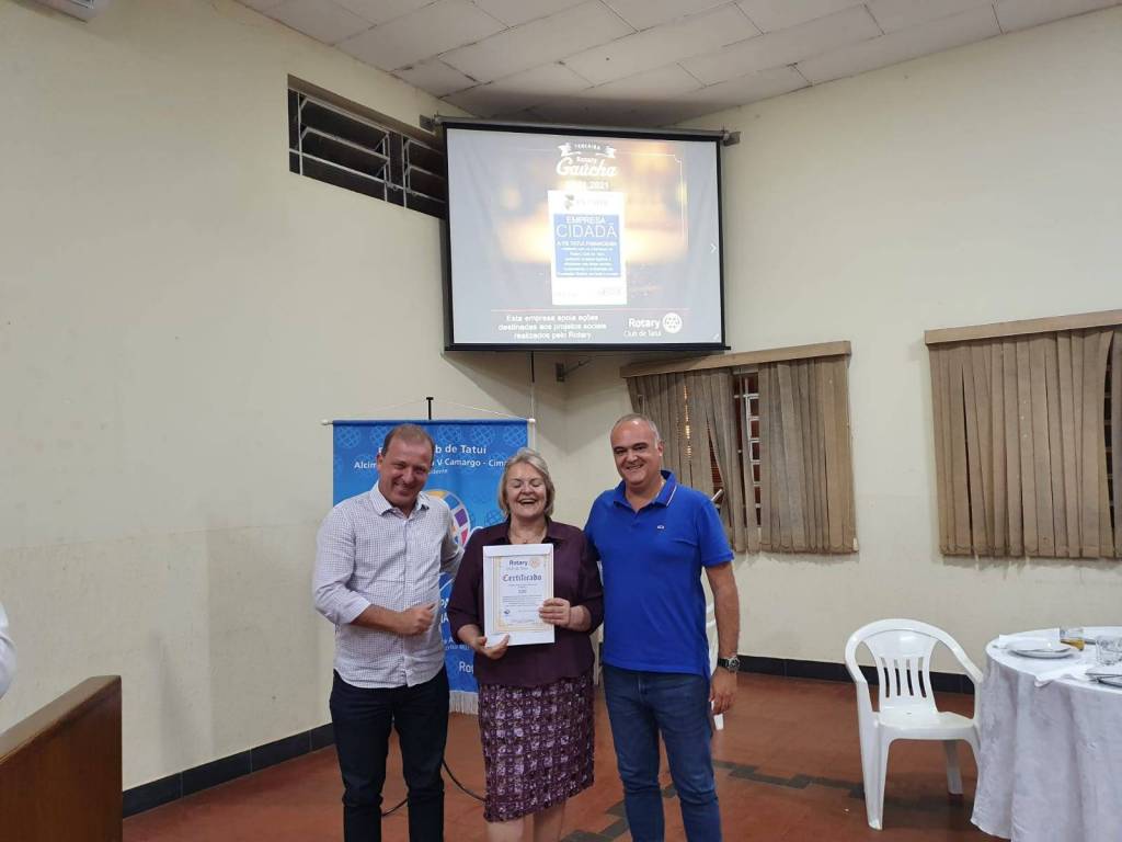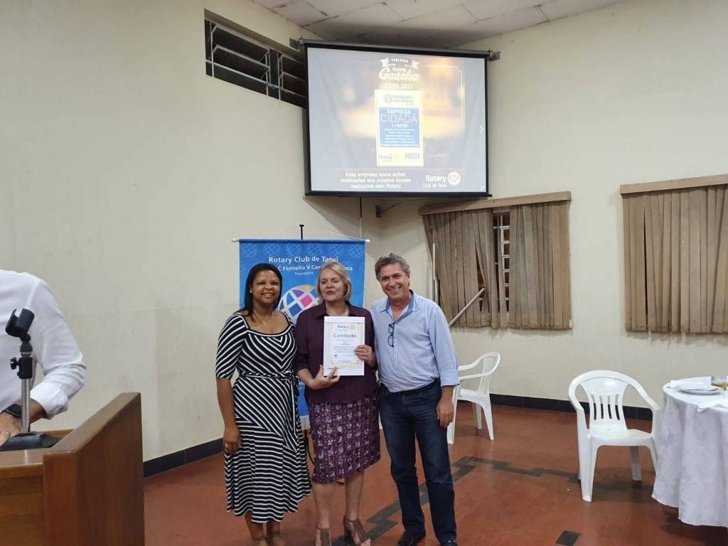 A presidente Cima Ferriello, do Rotary Club de Tatuí, agradeceu aos patrocinadores da 3ª Rotary Gaúcha, com a outorga de certificados aos mesmos. A cerimônia aconteceu na reunião ordinária do dia 03, na sede do clube, denominada “Festa em Ação de Graças aos colaboradores”.