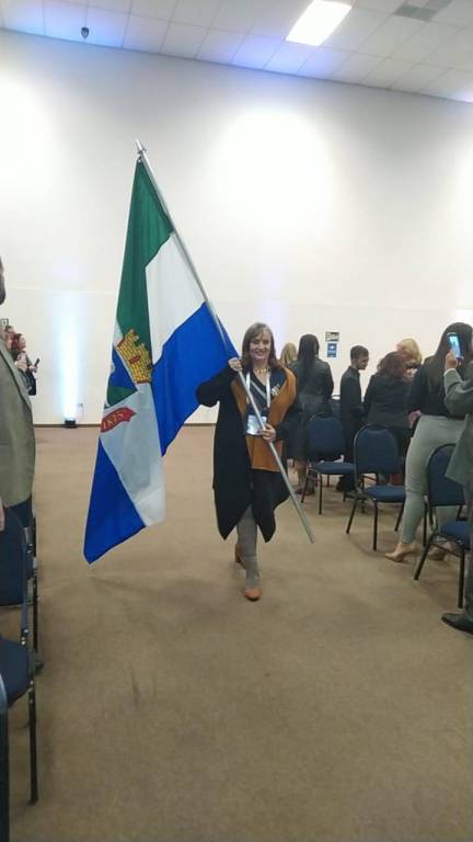 Abertura da 3ª Conferência do distrito 4621, sendo a 1ª presencial, 26/05/22. A companheira Márcia Brito representando a Estância Turística de Avaré na belíssima cerimônia.