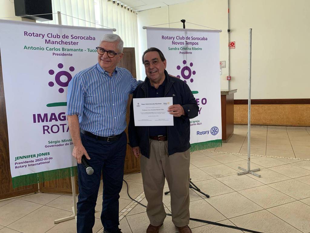 Hoje houve a reunião de interclubes entre o RC de Sorocaba-Novos Tempos e Rotary Club de Sorocaba- Manchester, para Abrilhantar a reunião houve a palestra com o professor luiz Almeida Marins Filho