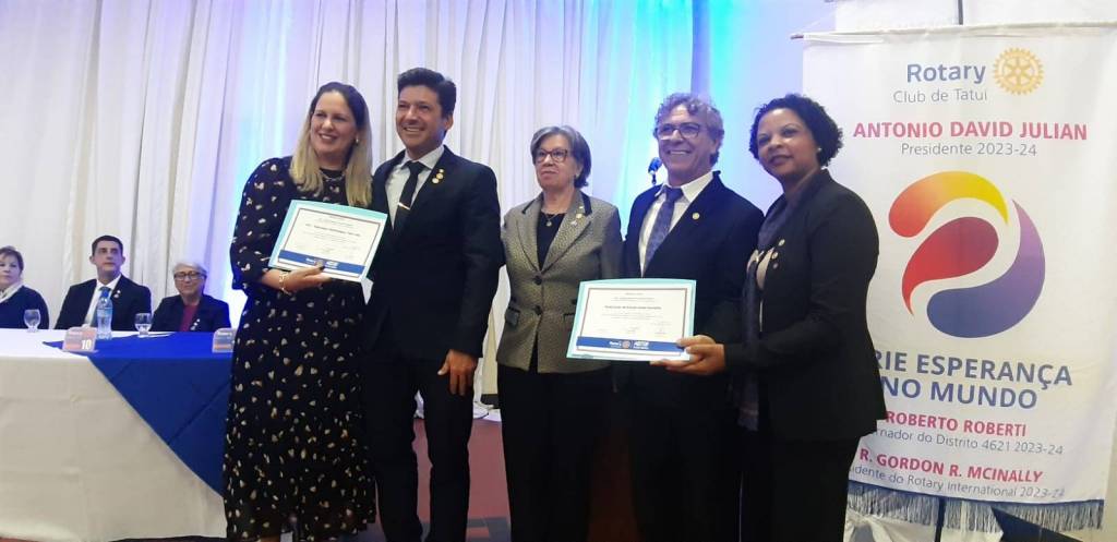 Ainda na reunião festiva do dia 05 de julho, houve a troca de comando no Rotary Club de Tatuí e na Casa da Amizade. No encerramento do ano rotário 2023-24, sob o lema “Crie Esperança no Mundo”, o casal David e Nilcia Julian será sucedido por Magaly e Godoy Nogueira, que no ano rotário 2024-25 levarão adiante o tema “A Magia do Rotary”.
