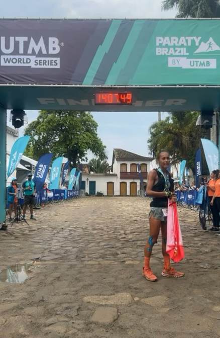 Ela levou a campanha da #endpolionow, correu com o botão da En Pólio Now em sua mochila de hidratação, entrou no funil de chegada carregando a bandeira e levou a bandeira da Pólio no pódio, deixando a mensagem para milhares de pessoas que estavam na arena da prova e para as pessoas que estavam acompanhando o circuito #utmb2024.