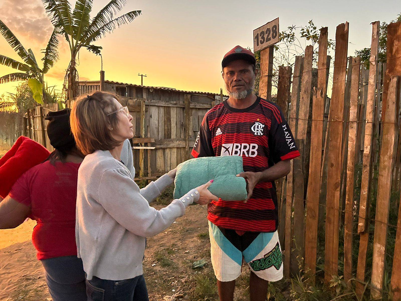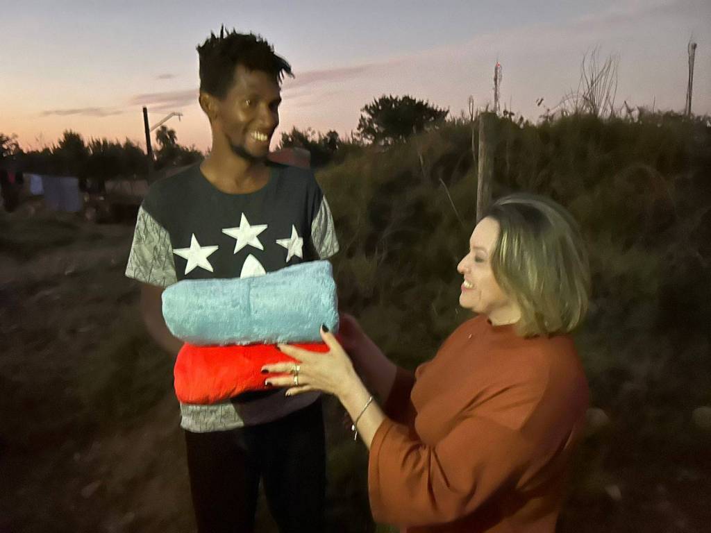 Entrega de cobertores projeto Me Aqueça nesse inverno