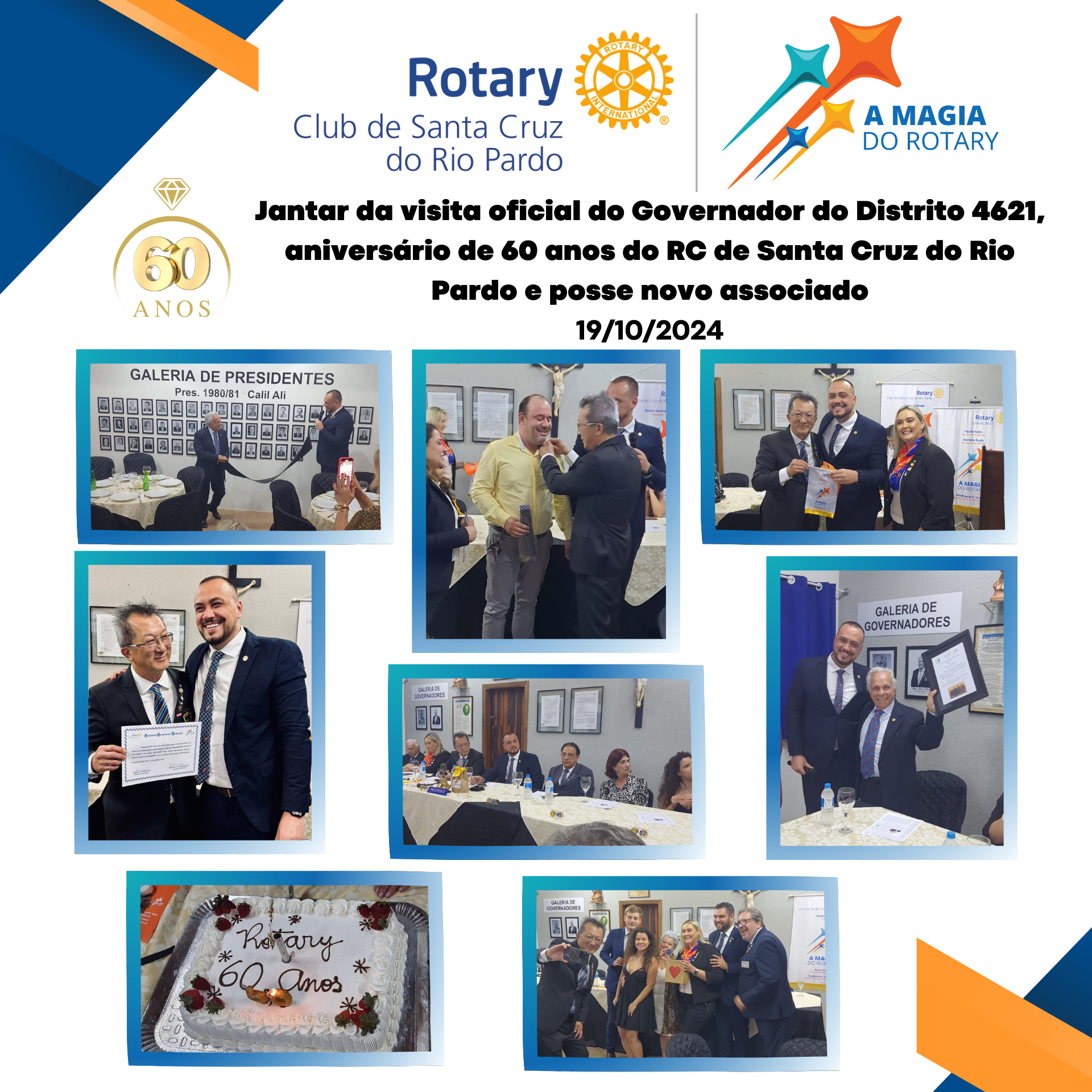 Visita oficial do Governador do Distrito, comemoração dos 60 anos do RC de Santa Cruz do Rio Pardo e posse para novo associado do clube.