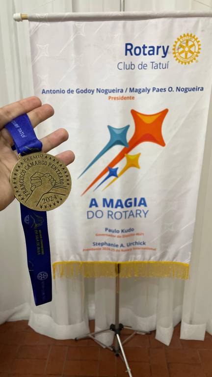 O Rotary Club de Tatuí e a Casa da Amizade realizaram, na reunião do dia 22, a entrega do prêmio “Francisco de Camargo Penteado – O Melhor Companheiro” para 66 estudantes do quinto ano do Ensino Fundamental de escolas públicas e particulares de Tatuí. Sob a coordenação de Márcio Gomes da Silva, rotariano, e Silvana Ribeiro da Silva Silveira, da Casa da Amizade, o evento contou com a participação da Secretária Municipal de Educação, Elisângela Cecílio, supervisoras de ensino, professoras e os alunos contemplados, acompanhados por seus responsáveis. Cada um deles recebeu um certificado, uma medalha e uma sacolinha com doces.