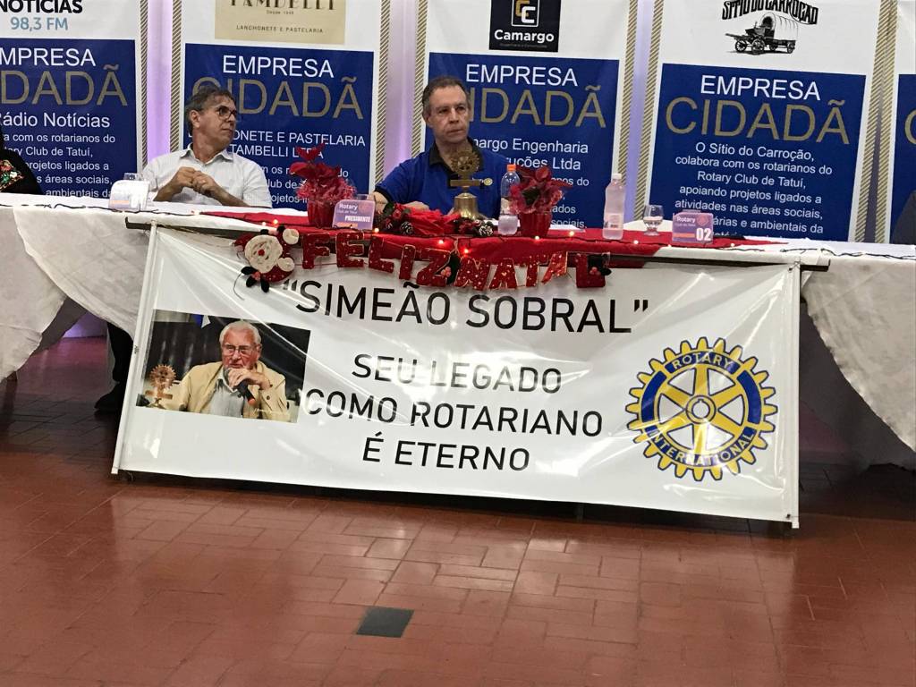 O Rotary Club de Tatuí realizou, no dia 13, reunião de votação para a escolha do presidente para o ano rotário 2025-26 e festiva de Natal. Foi anunciado pelo vereador Márcio Antônio de Camargo a aprovação, pela Câmara Municipal de Tatuí, do projeto de lei de sua autoria, denominando a creche-escola, no Residencial Vida Nova, como “Dr. Simeão José Sobral”. “O objetivo é eternizar o nome de uma pessoa exemplar que, dos 105 anos que viveu, mais de 75 anos foram servindo como rotariano” destacou o edil, que esteve acompanhado pelo advogado Eugenio dos Santos Neto (Geninho) e pela assessora parlamentar Rosemary de Camargo Leite de Almeida.