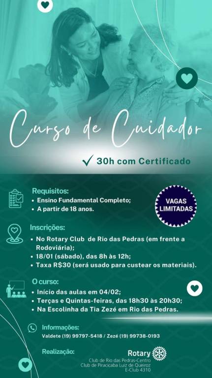 Essa semana teve início o Curso de Cuidadores na sua 1ª versão oferecida em Rio das Pedras. É o 1° CuidAmor!