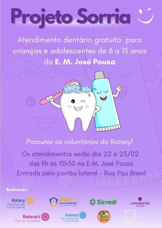 Uma parceria com a Igreja do Evangelho Quadrangular, Projeto Samuel, AFROP, Rota Kids Povoador, Sicredi, Interact e Rotaract Luiz de Queiroz, Uniodonto.