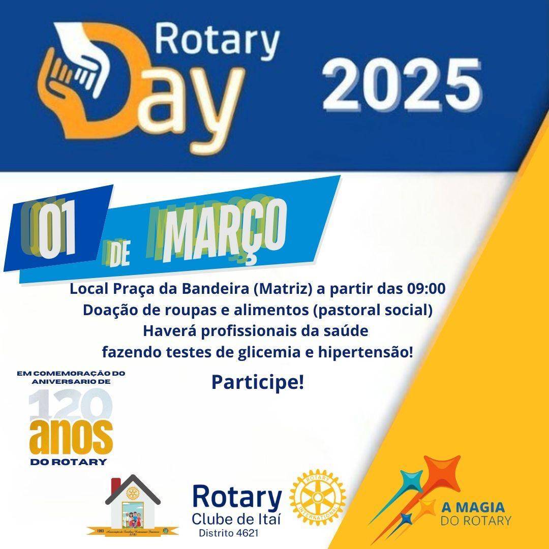 Dia 01 de Março o Rotary Club de Itaí realizou o Rotary Day na Praça da Matriz, com aferição da pressão arterial e teste de glicemia para a população. Foram realizados 78 testes de glicemia e muitas pessoas aferiram sua pressão arterial. A Magia do Rotary no serviço à comunidade!