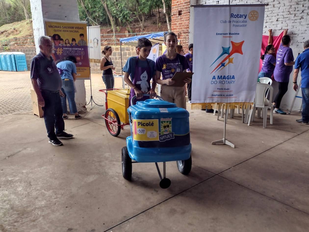 Os Rotary, Interact e Rotaract clubes de Piracicaba estiveram presentes divulgado a campanha de vacinação contra a pólio e vendendo sorvetes para arrecadar recursos para o Programa Pólio Plus.