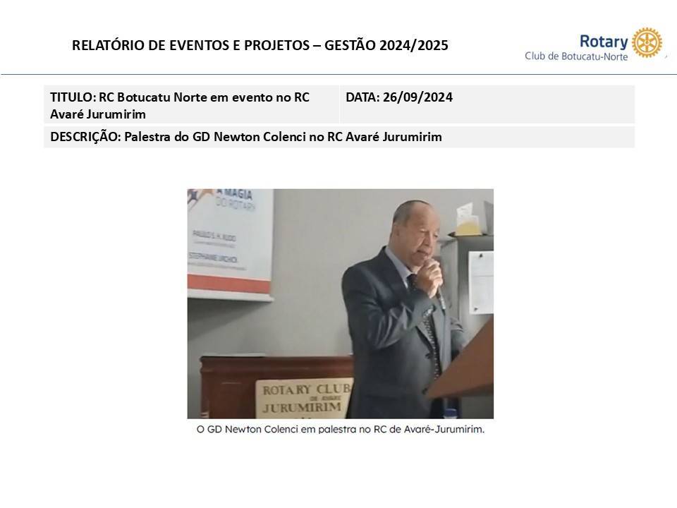 Palestrante GD Newton Colenci realizou palestra no RC de Avaré - Jurumirim.