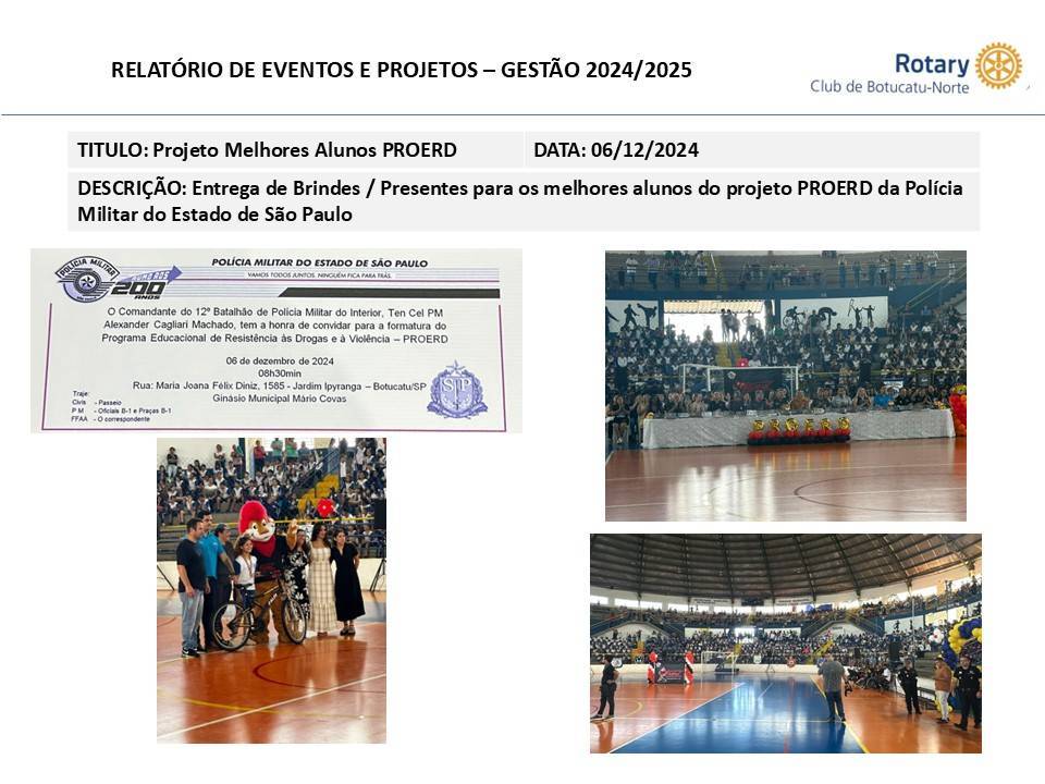 O Rotary Club Botucatu - Norte realiza anualmente parceria doando Brindes para premiações dos alunos, atingindo mais de 3500 alunos no Municipio de Botucatu