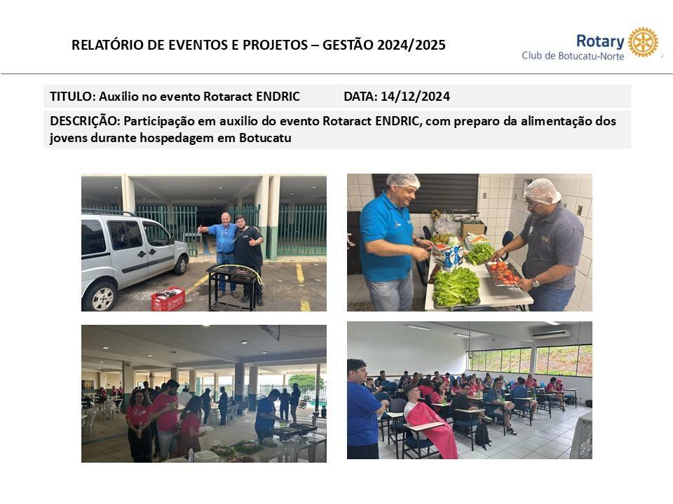Participação em auxilio do evento Rotaract ENDRIC, com preparo da alimentação dos jovens durante hospedagem em Botucatu