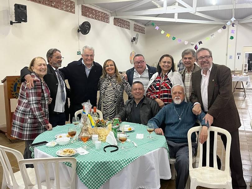 Noite Julina de Companheirismo no Rotary Club de Tietê O Rotary Club de Tietê promoveu uma animada noite de companheirismo com temática julina, repleta de comidas típicas de festa junina, música tradicional e uma decoração especial que transformou o Club em um verdadeiro arraial. Tivemos a honra de receber o Rotary Club de Tatuí – Cidade Ternura, representado por seu presidente, companheiro Mineiro, e o Rotary Club de Cerquilho, com seu presidente, companheiro Eduardo Mathias. Os companheiros de ambos os Clubs prestigiaram a reunião, que teve caráter de interclubes e fortaleceu ainda mais os laços rotários entre nossas cidades. Foi uma noite alegre, de integração e celebração dos valores rotários, marcada pela união, amizade e muita animação!