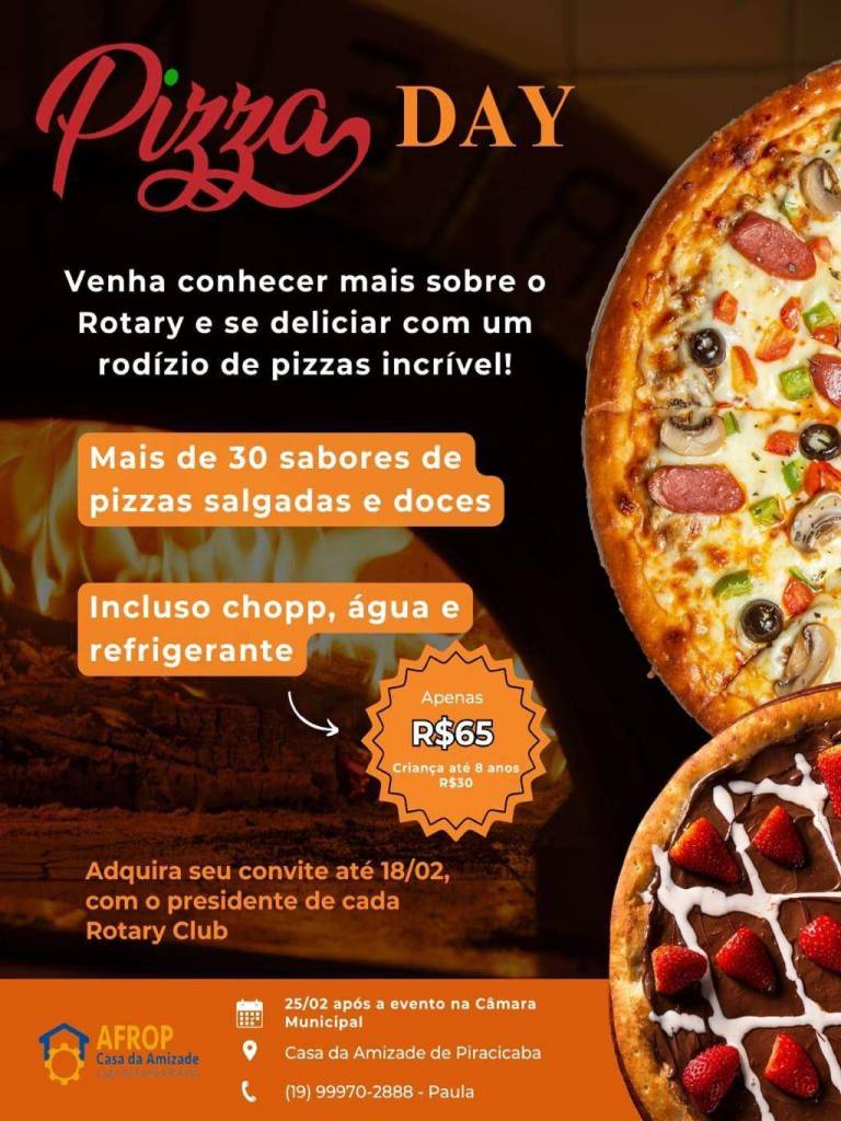 NOITE DA PIZZA PARA APRESENTAÇÃO DO ROTARY DAY EM APRESENTAÇÃO A COMUNIDADE, REUNIÃO CONJUNTA COM AFROP, E ROTARYS DA CIDADE DE PIRACICABA