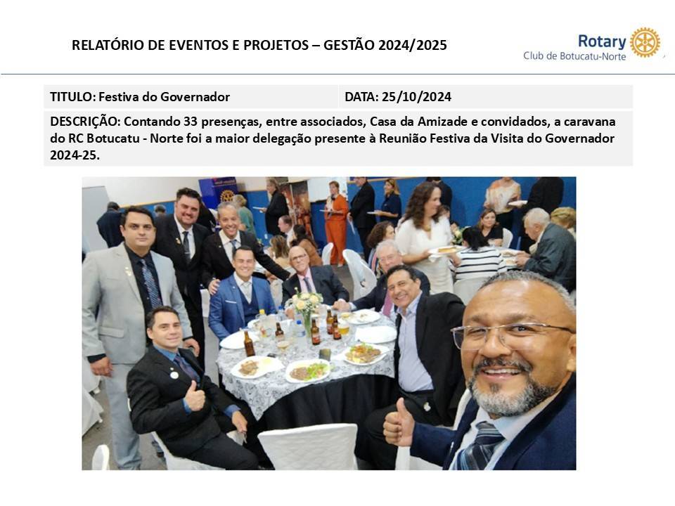 Contando 33 presenças, entre associados, Casa da Amizade e convidados, a caravana do RC Botucatu - Norte foi a maior delegação presente à Reunião Festiva da Visita do Governador 2024-25.