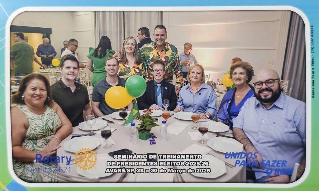 O Presidente Eleito para o ano rotário 2025-2026 Artur Janeiro esteve em Avaré participando do PETS. Destaca que durante a programação o companheirismo foi potente para criação de projetos e parcerias a serem desenvolvidas durante o próximo ano rotário.