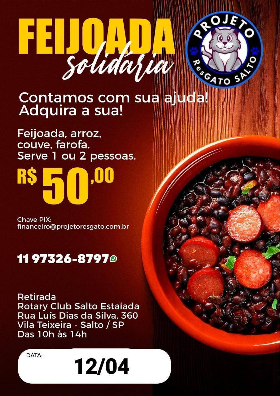 Feijoada solidária Rotary CLub Salto Estaiada e projeto ResGATO Satlo