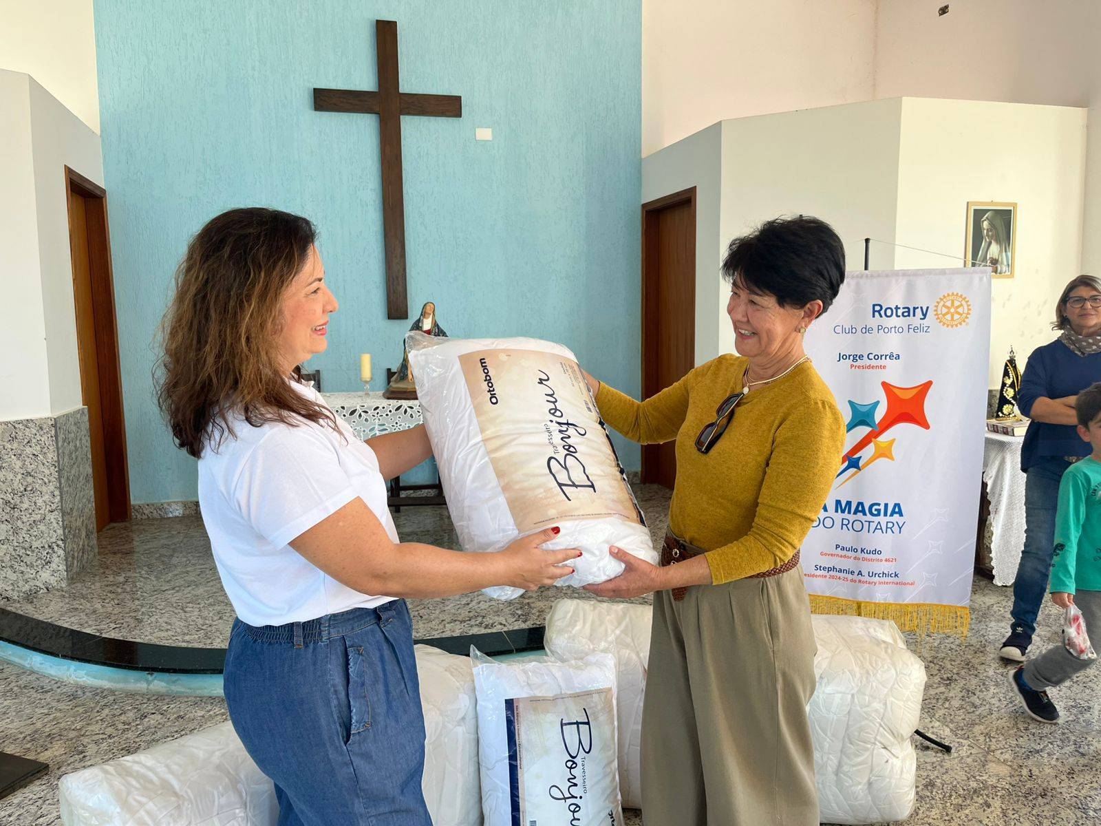 No dia 18 de junho, o Rotary Club de Porto Feliz entregou mais de 20 travesseiros à Casa de Acolhida Beracá, instituição que desenvolve um trabalho essencial no acolhimento e recuperação de pessoas em situação de dependência química e de rua. Os companheiros presentes tiveram também a oportunidade de conhecer as instalações e foram recebidos com muito carinho pela equipe da entidade.