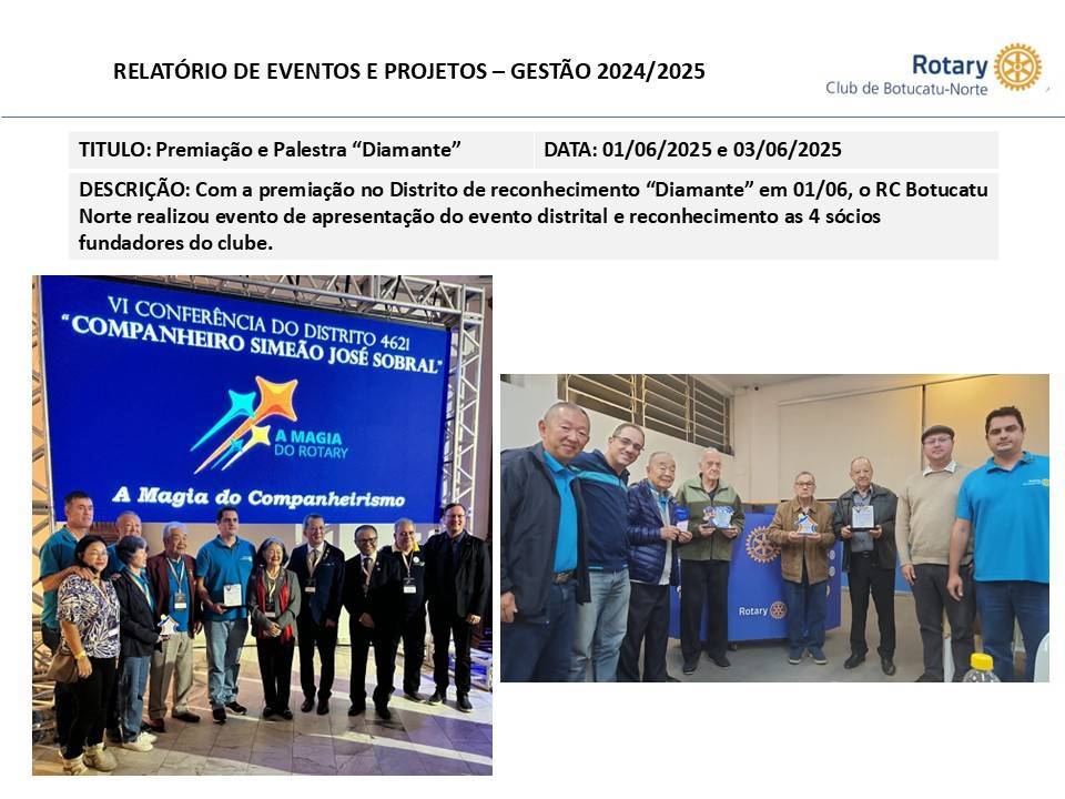 Palestra e reconhecimento dos sócios fundadores pela premiação de RC Diamante
