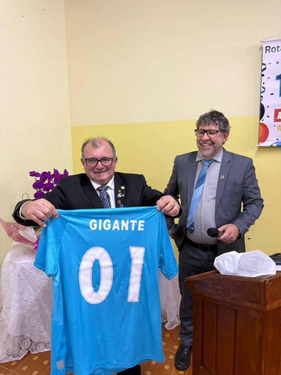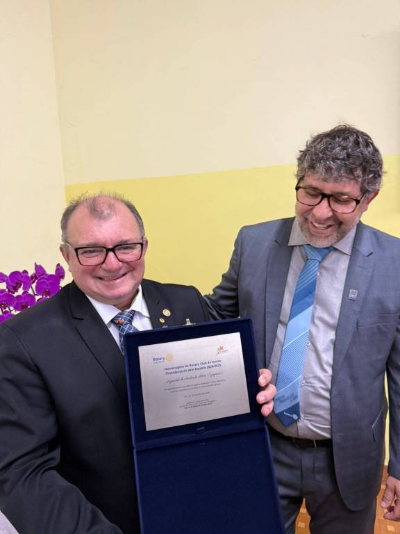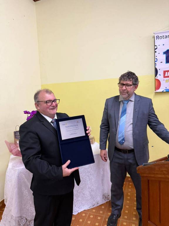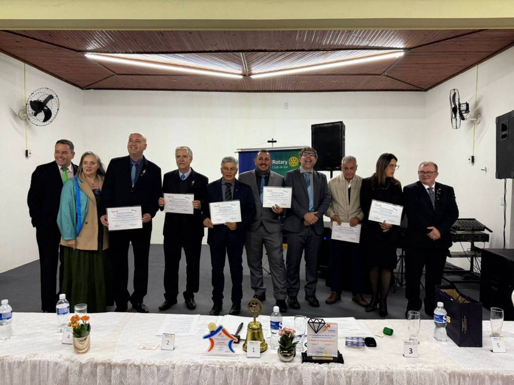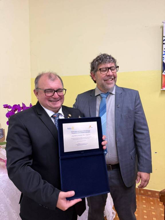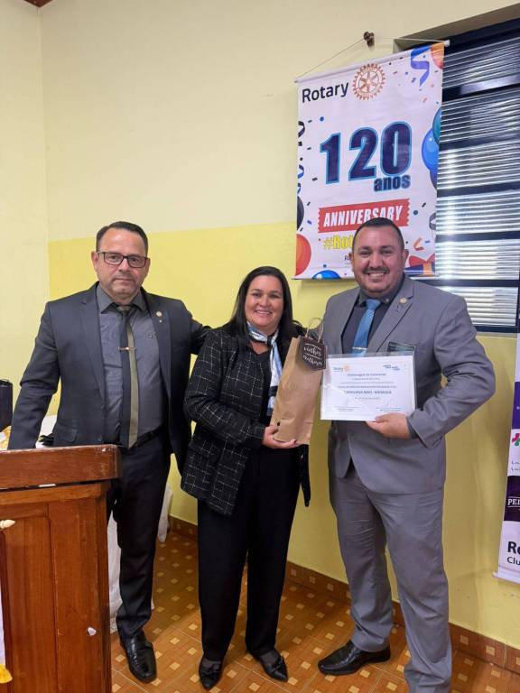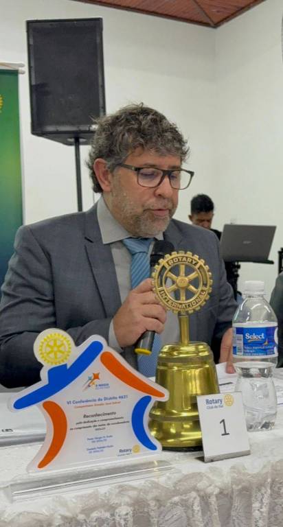 Nosso agradecimento especial ao presidente que encerra sua gestão, Agnaldo de Andrade Alves (Gigante), por sua dedicação, liderança e compromisso com os valores rotários. Seu trabalho fez a diferença e foi reconhecido com a mais alta honraria do Distrito 4621: o Troféu Diamante.
