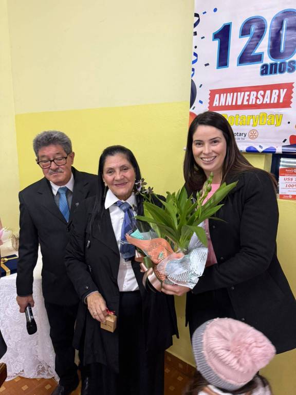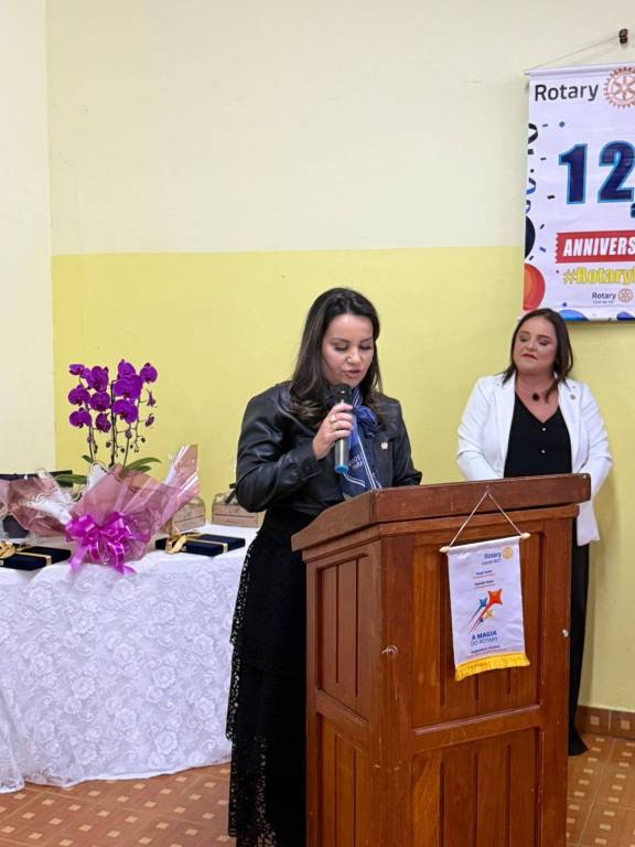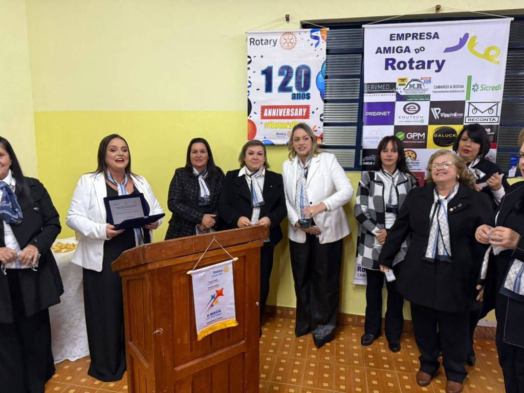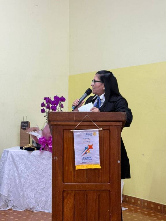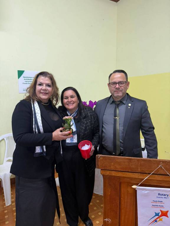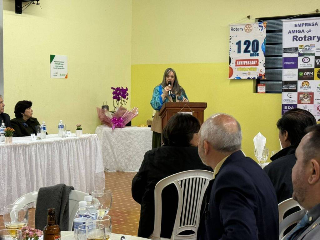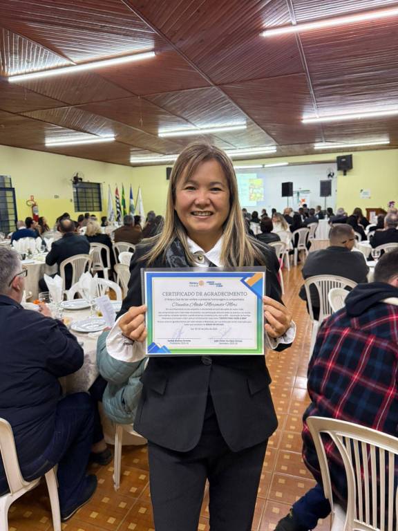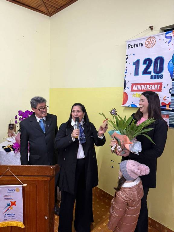 Durante a cerimônia, prestamos uma homenagem especial à companheira Claudia Akiko Morimoto Mori, em reconhecimento ao seu empenho e voluntariado nas ações do nosso clube. Sua dedicação às causas comunitárias, presença ativa nos eventos e atuação junto à AFRI – Associação de Famílias Rotarianas – simbolizam com excelência o nosso lema: "Unidos para Fazer o Bem."