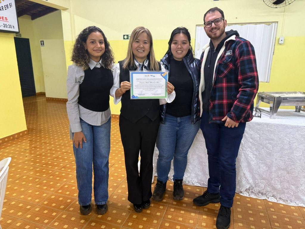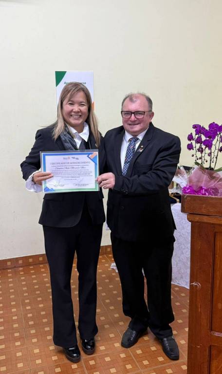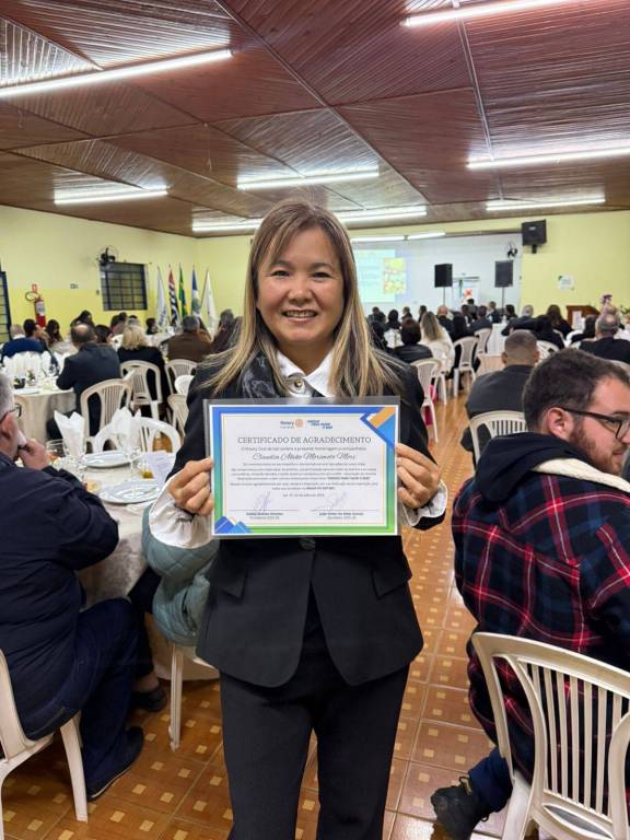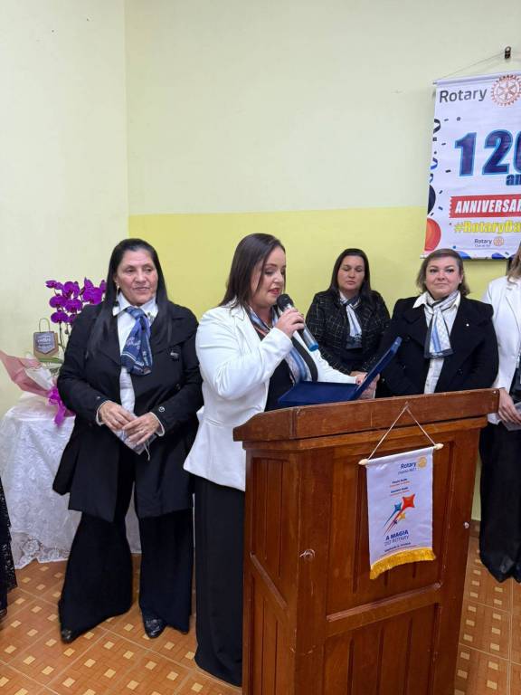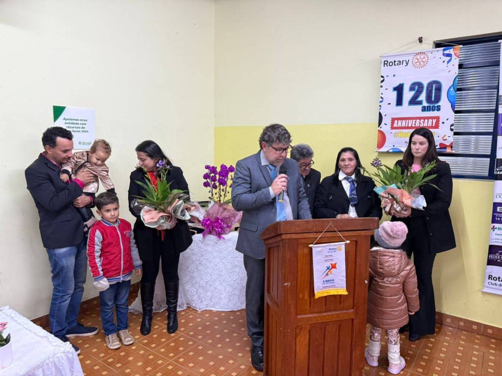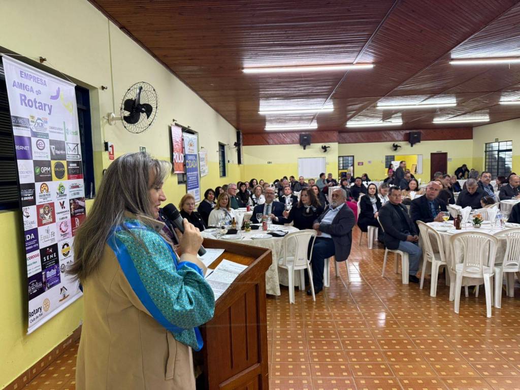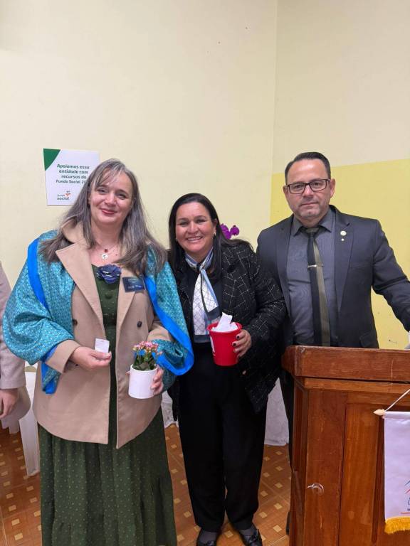 Durante a cerimônia, prestamos uma homenagem especial à companheira Claudia Akiko Morimoto Mori, em reconhecimento ao seu empenho e voluntariado nas ações do nosso clube. Sua dedicação às causas comunitárias, presença ativa nos eventos e atuação junto à AFRI – Associação de Famílias Rotarianas – simbolizam com excelência o nosso lema: "Unidos para Fazer o Bem."