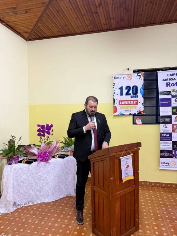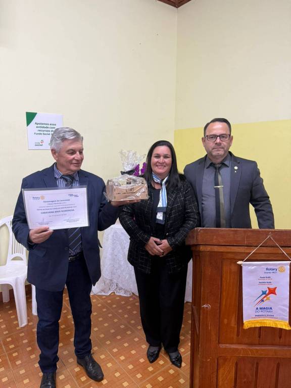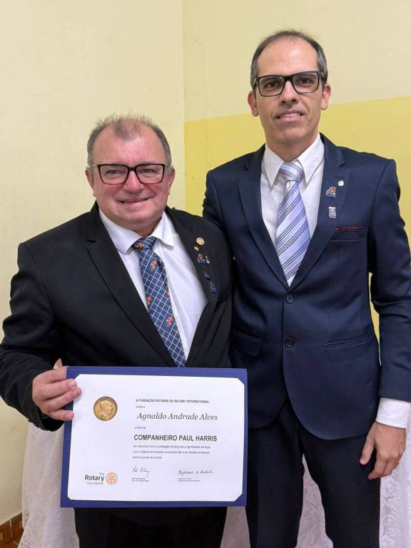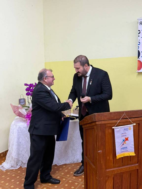 E o grande homenageado da noite foi Agnaldo de Andrade Alves (Gigante), o presidente que, pela primeira vez, conquistou o Troféu Diamante para o nosso clube, juntamente com a honraria Paul Harris. Seu trabalho é fruto de dedicação, conexão, união e compromisso com o bem comum. Um verdadeiro exemplo de quem vive o ideal rotário de "Servir acima de si mesmo", com emoção, propósito e paixão pelo que faz.