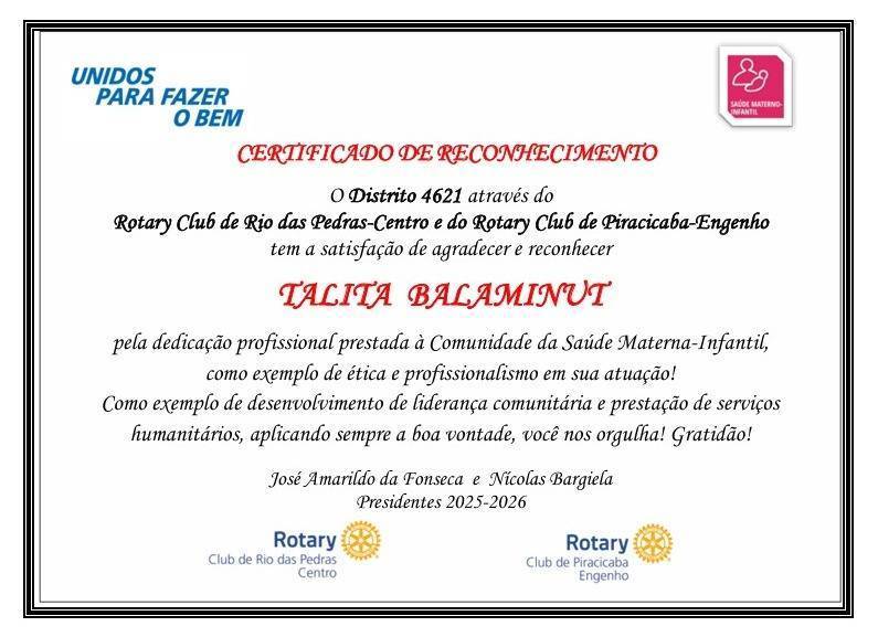 Julho é o mês que o Rotary dedica a Área de Enfoque "Saúde Materno-Infantil", e mesmo de forma virtual, nos reunimos com os Companheiros do Rotary Club de Piracicaba-Engenho para um bate papo com a Enfermeira Drª Talita Balaminut. Foi um belo encontro para fechar o mês!