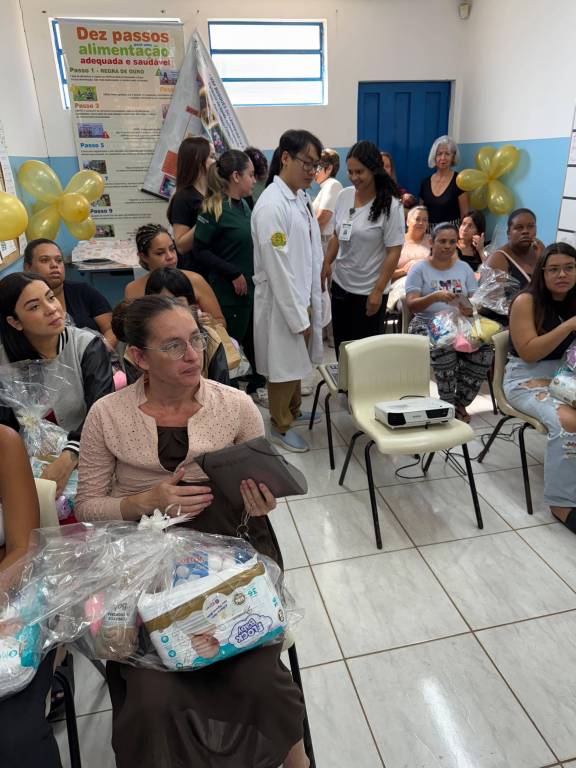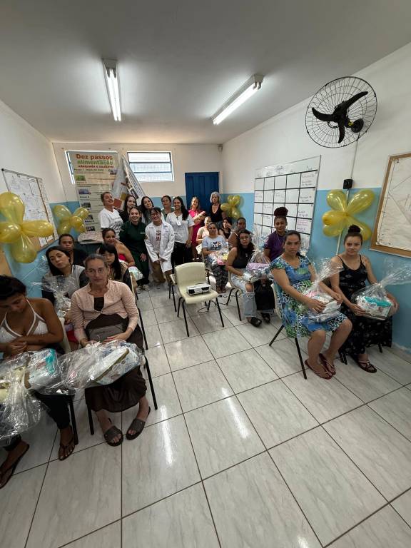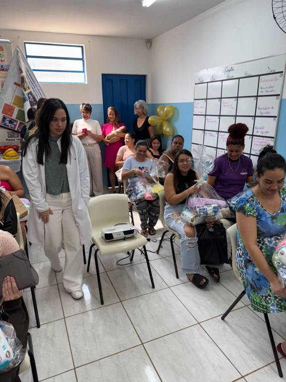 No dia 20 de agosto de 2025, no USF Bosque dos Lenheiros I, encerramos a campanha em um evento especial para 30 mulheres da comunidade — gestantes e mães. A manhã começou com um café acolhedor ☕, seguido de uma palestra da enfermeira Beatriz Sopran sobre cuidados durante a gestação e o pós-parto, e foi finalizada com a entrega dos kits maternos 🎁.