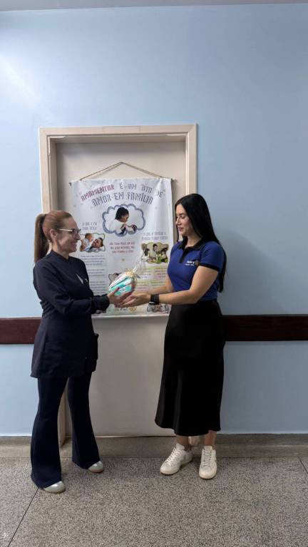 Fomos até a Maternidade Municipal e entregamos os kits à enfermeira responsável, para que fossem distribuídos às gestantes em pré-parto e às mamães com seus bebês.