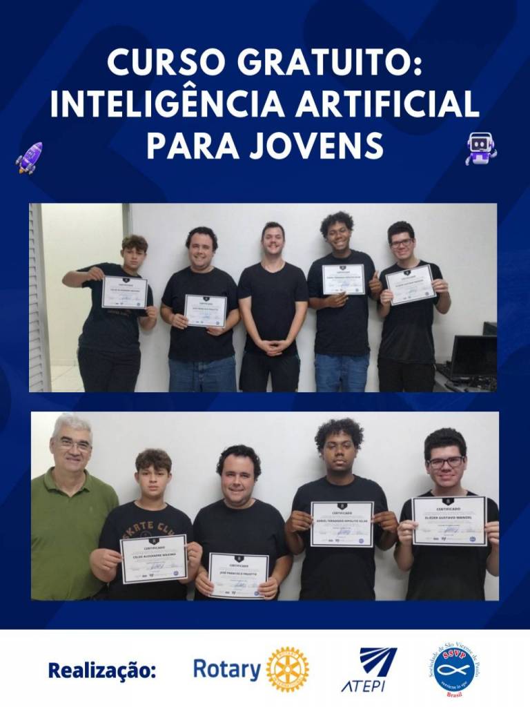 Um agradecimento especial aos alunos pela dedicação, aos parceiros e apoiadores, Sociedade de São Vicente de Paulo, Rotary, a equipe do curso, e ao nosso professor Vitor Vencovsky, que guiou essa jornada!
