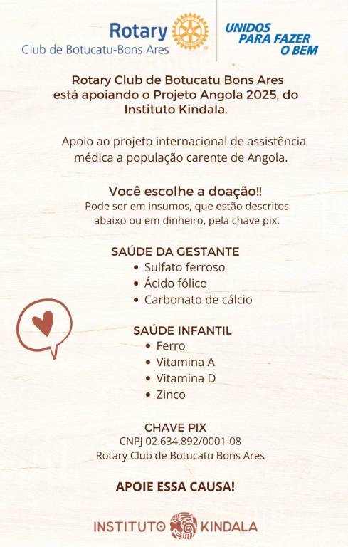 Nós do RCB Bons Ares fizemos uma campanha para auxiliar na arrecadação de medicamentos para o Projeto de Angola, que será reazliado agora em setembro.
