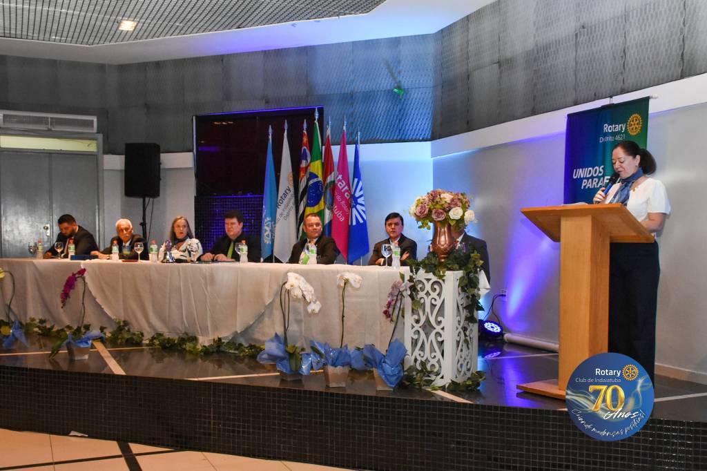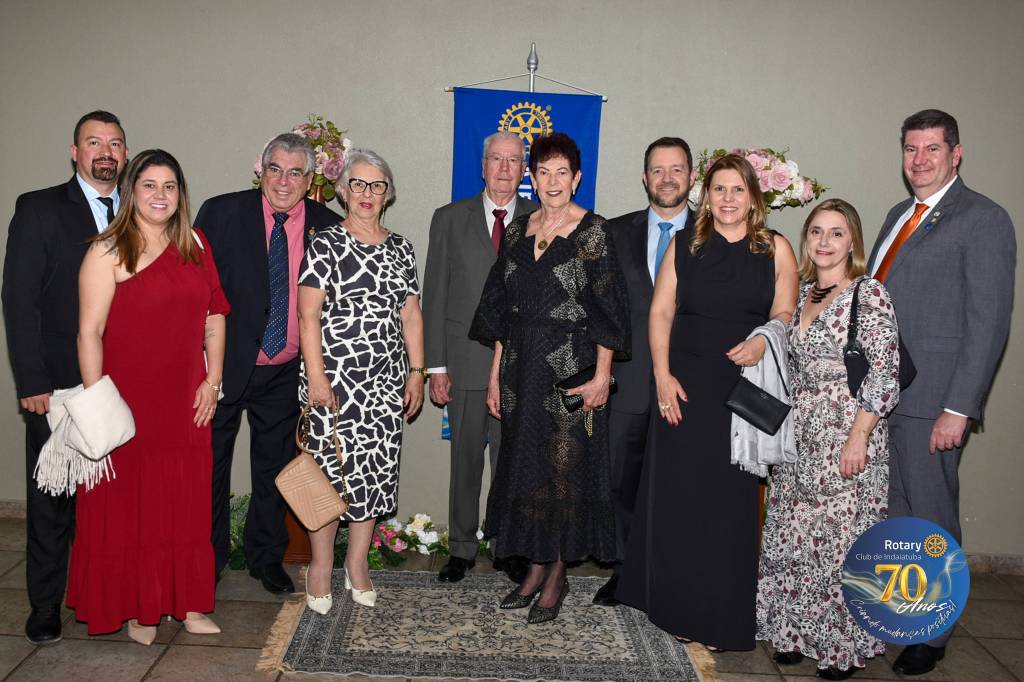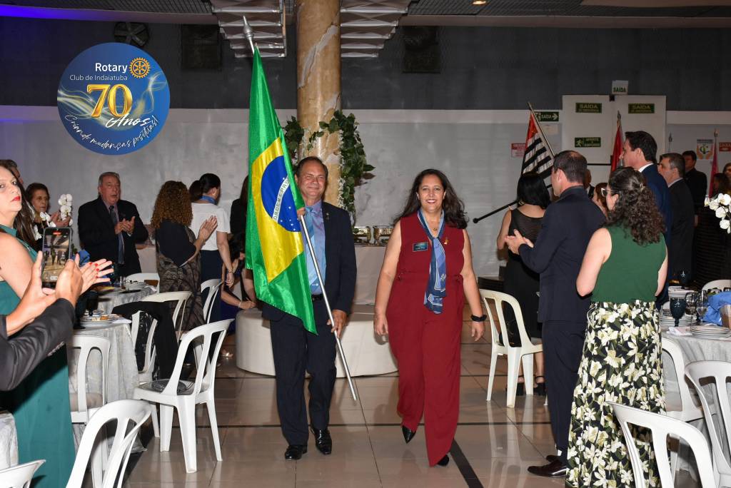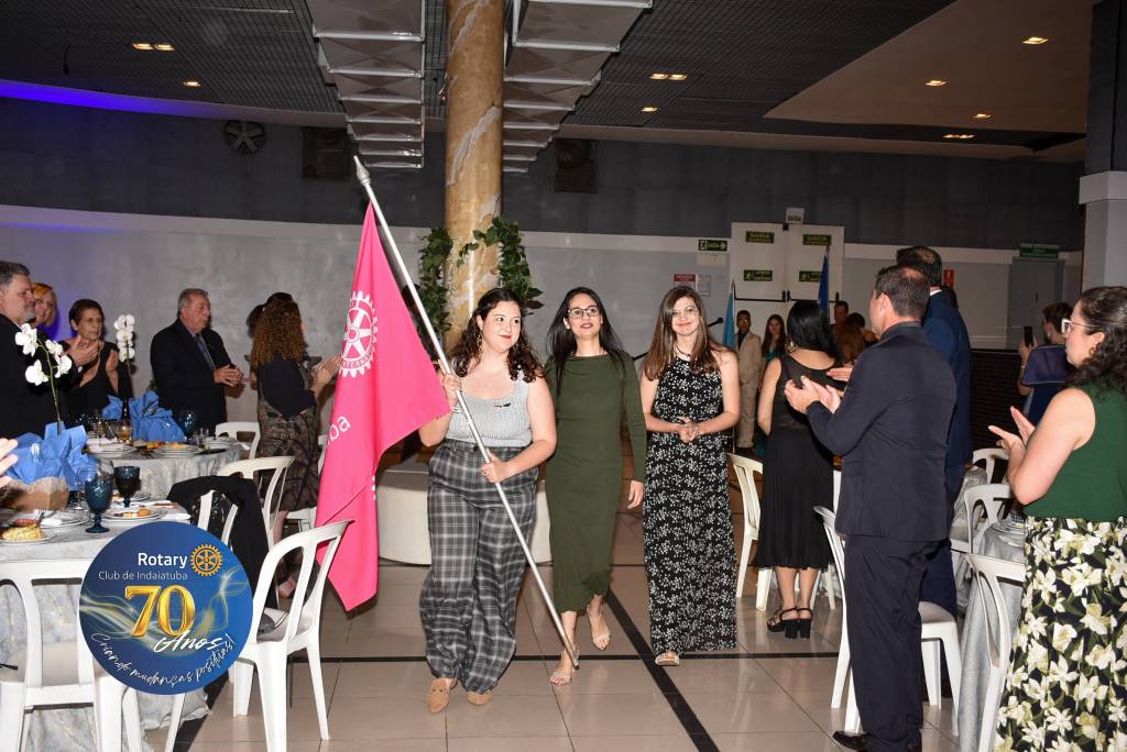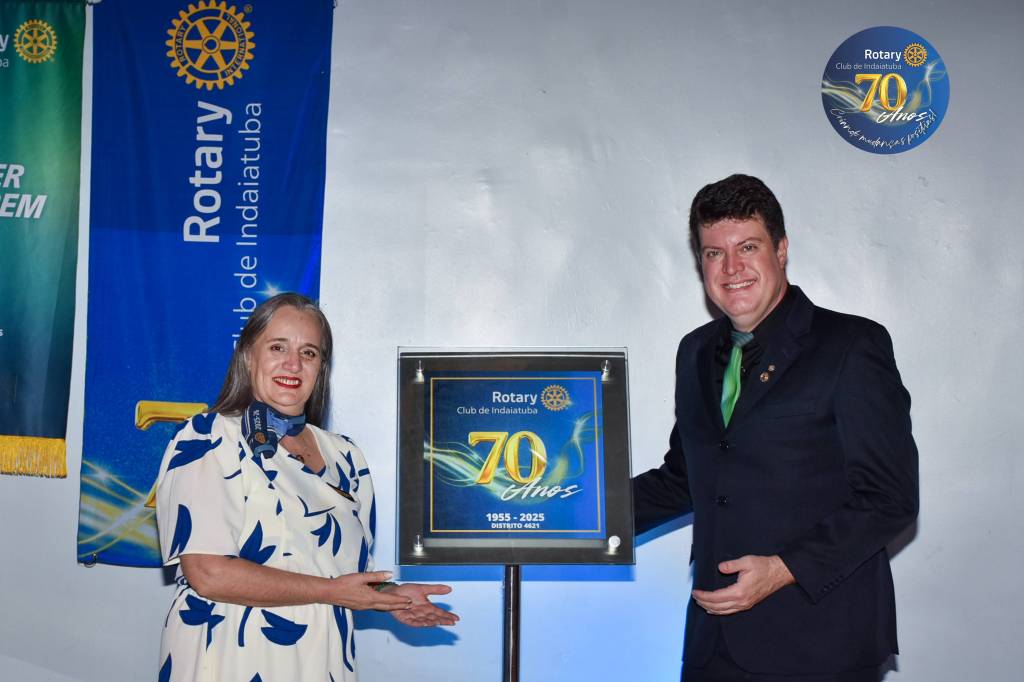 Como manda a tradição rotária, a noite foi coroada com a troca de flâmulas — pequenos estandartes que simbolizam identidade, amizade e união entre clubes. Para marcar os 70 anos, o Rotary Club de Indaiatuba criou uma flâmula especial, em edição limitada, com a logomarca comemorativa. Um gesto simples, mas repleto de significado para todos que compartilham da missão rotária.