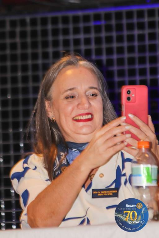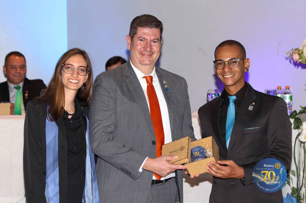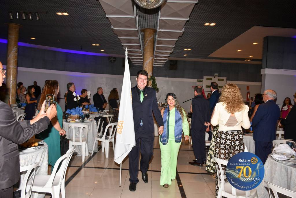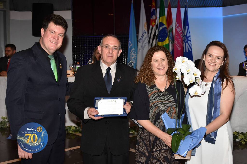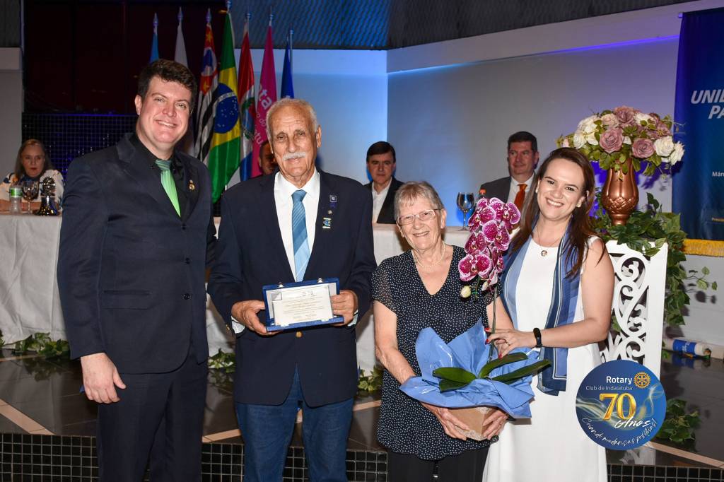 Como manda a tradição rotária, a noite foi coroada com a troca de flâmulas — pequenos estandartes que simbolizam identidade, amizade e união entre clubes. Para marcar os 70 anos, o Rotary Club de Indaiatuba criou uma flâmula especial, em edição limitada, com a logomarca comemorativa. Um gesto simples, mas repleto de significado para todos que compartilham da missão rotária.