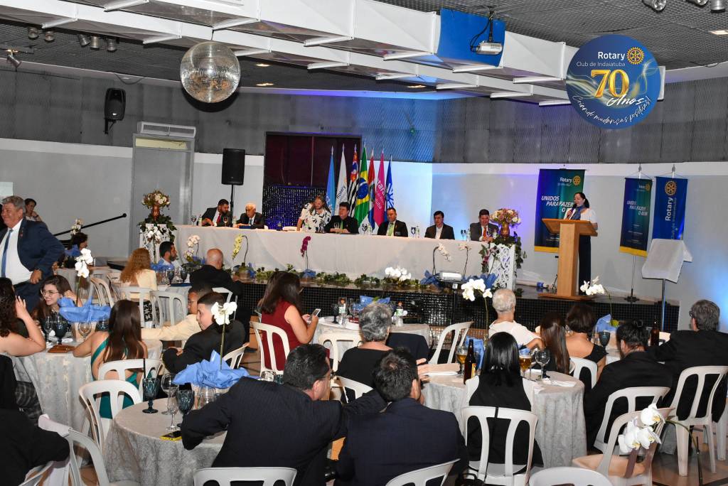 Na noite do dia 19 de setembro de 2025, o Indaiatuba Clube foi palco de uma celebração inesquecível. Com emoção à flor da pele e olhos voltados para o futuro, o Rotary Club de Indaiatuba comemorou seus 70 anos de fundação em uma solenidade marcada pelo respeito à história, o reconhecimento ao serviço voluntário e a esperança de um amanhã ainda mais transformador.