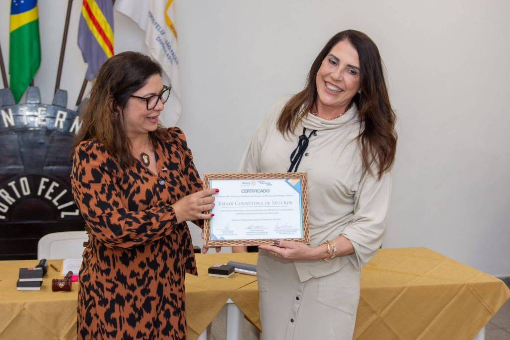 Durante a mesma reunião realizada em 2 de outubro, o Rotary Club de Porto Feliz prestou uma homenagem especial à Emadi Corretora de Seguros, que recebeu o certificado de “Empresa Amiga do Rotary” em reconhecimento ao apoio e parceria com as causas rotárias na comunidade.