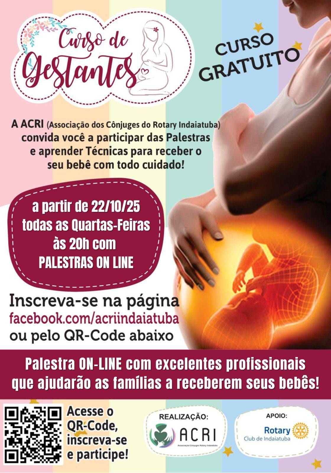 Estamos entusiasmadas em anunciar o início do nosso tão esperado Curso de Gestantes, promovido pela ACRI (Associação Conjuges Rotary Indaiatuba), que começará no dia 22 de Outubro de 2025! 🎉