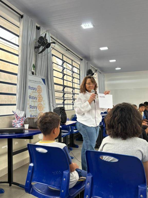 No dia 03 de outubro de 2025, foi realizada uma importante ação em parceria entre os clubes de Rotary de Botucatu, a Escola EMEFI Professora Lygia Camargo Pardini e a Psicóloga Lucia Genta. A iniciativa teve como objetivo promover a conscientização sobre o Bullying entre os alunos dos 3º e 4º anos.